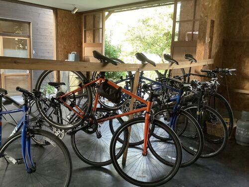 今日は平日ですがビワイチのお客様です。 バーベキューのサイトは時にはサイクルポートに変わります。 レンタサイクルもあります。
